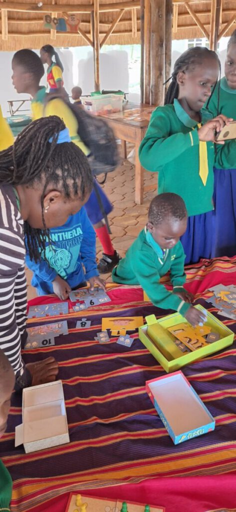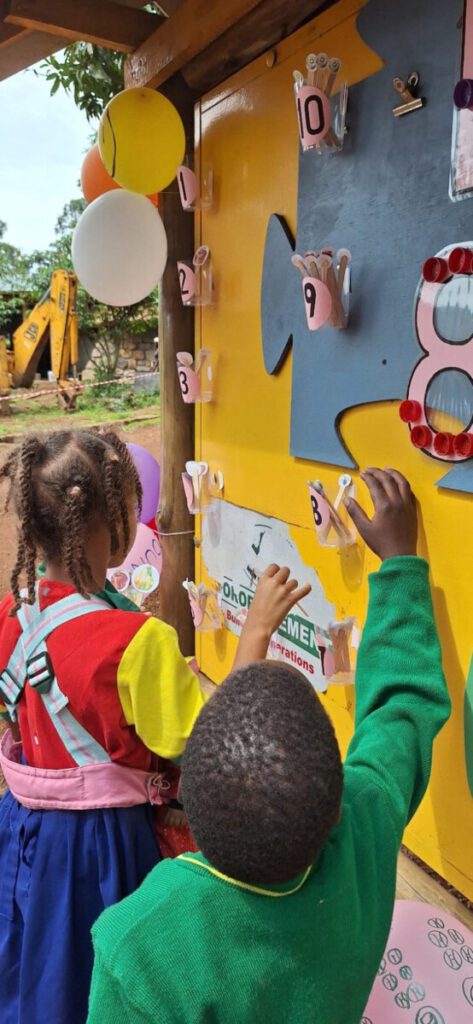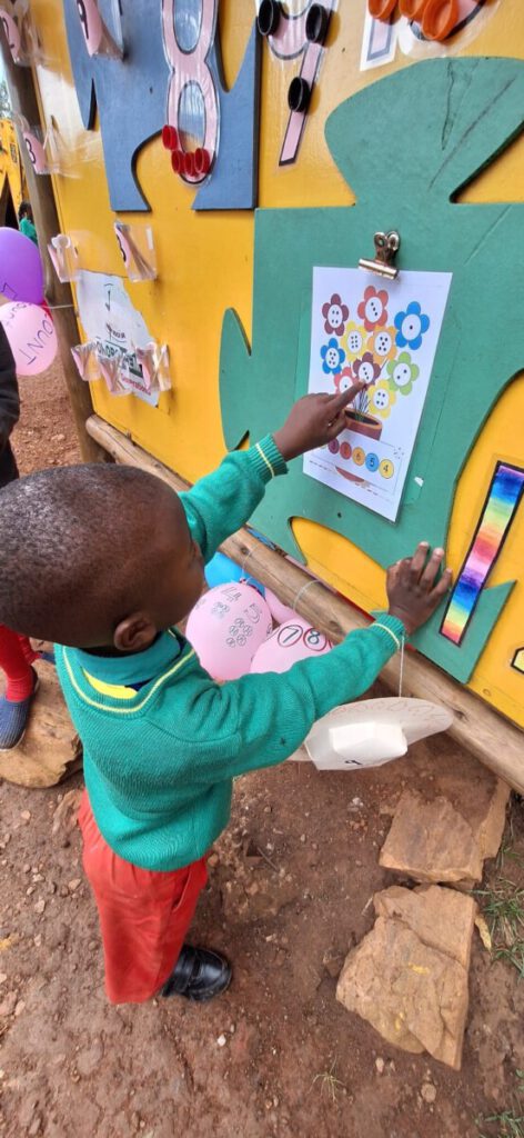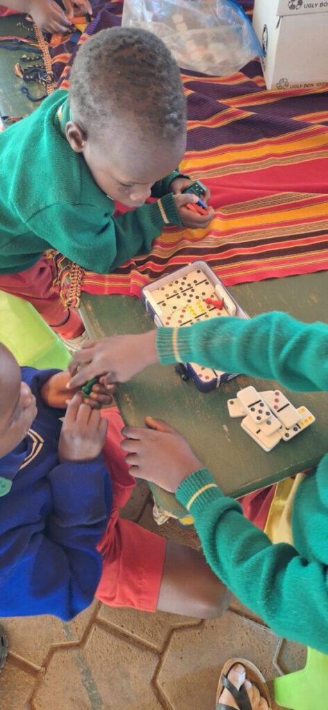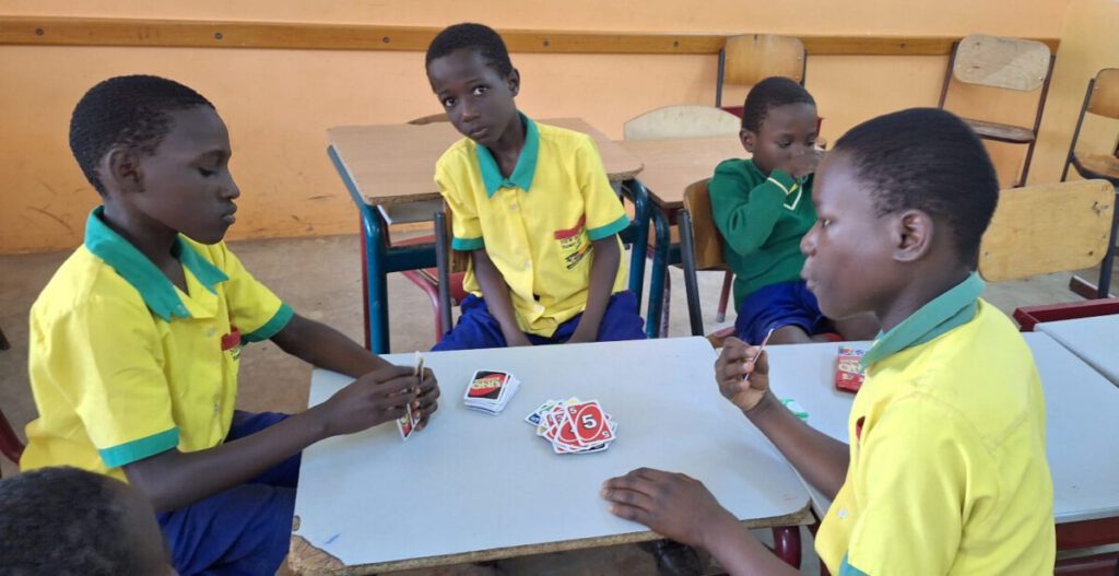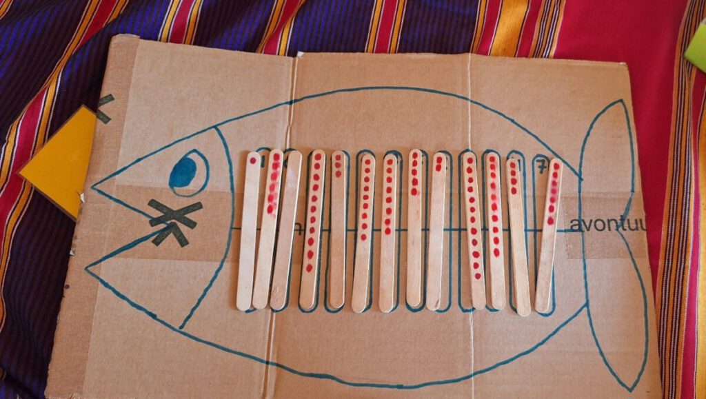 Vandaag, zaterdag, was het ‘visitation day’, de dag dat ouders welkom zijn om met de leerkrachten te praten en het werk van hun kinderen te bekijken. Op de kleuterschool bedachten we dat we om deze keer het rekenen centraal te stellen. We wilden vooral laten zien dat je spelenderwijs heel veel kunt leren over cijfers en aantallen. De primary school besloot om hier bij aan te sluiten. Deze week hebben alle groepen een box met een aantal rekenspelletjes gekregen.
