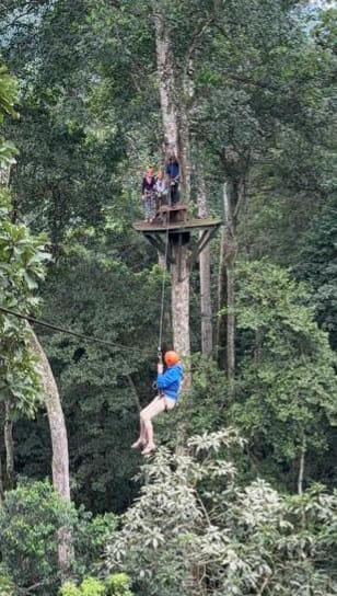 Na een week werken was het weer tijd voor ontspannen. En wil ziplinen in het regenwoud! Een hele klim via de boom omhoog, maar gelukkig zaten we vast aan een lijn. Daarna 6 keer een afstand tussen de bomen overbruggen via een zipline. We waren met z’n vieren. Het was erg leuk om te doen en erg gezellig!