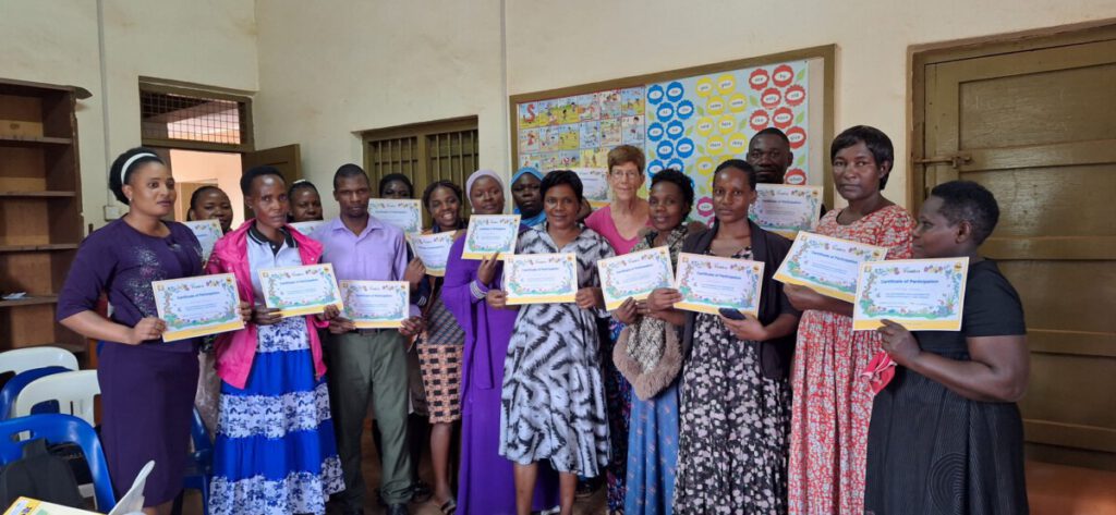 Ook deze week stond in het teken van voorbereiden en geven van een driedaagse training. Deze keer in Lugazi. Het was deze keer een kleinere groep, namelijk 18 teachers. Best fijn om met zo’n kleine groep te werken. De teachers waren actief betrokken, deden mee en wilden graag leren. We hadden veel plezier met elkaar. De laatste dag gaven de leerkrachten een voorbeeldles. Een van de groepjes had gekozen voor het aanleren van sound s. Ze hadden een heleboel dingen bij elkaar gezocht, die wel of niet met sound s begonnen. De woorden die met s begonnen mochten in de doos, de anderen niet. Een mooi voorbeeld van een actieve, enthousiaste leerkracht.